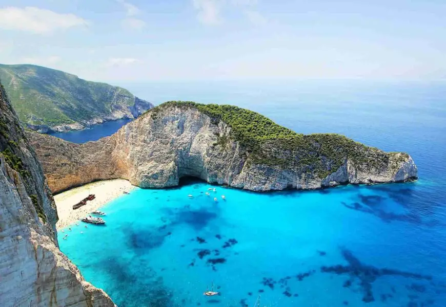 Melhores Ilhas para Natureza: Zakynthos, conhecida pela Navagio Beach, é um destino icônico. Outra ilha é Creta, que abriga o desfiladeiro de Samaria, ideal para trilhas e aventuras ao ar livre.